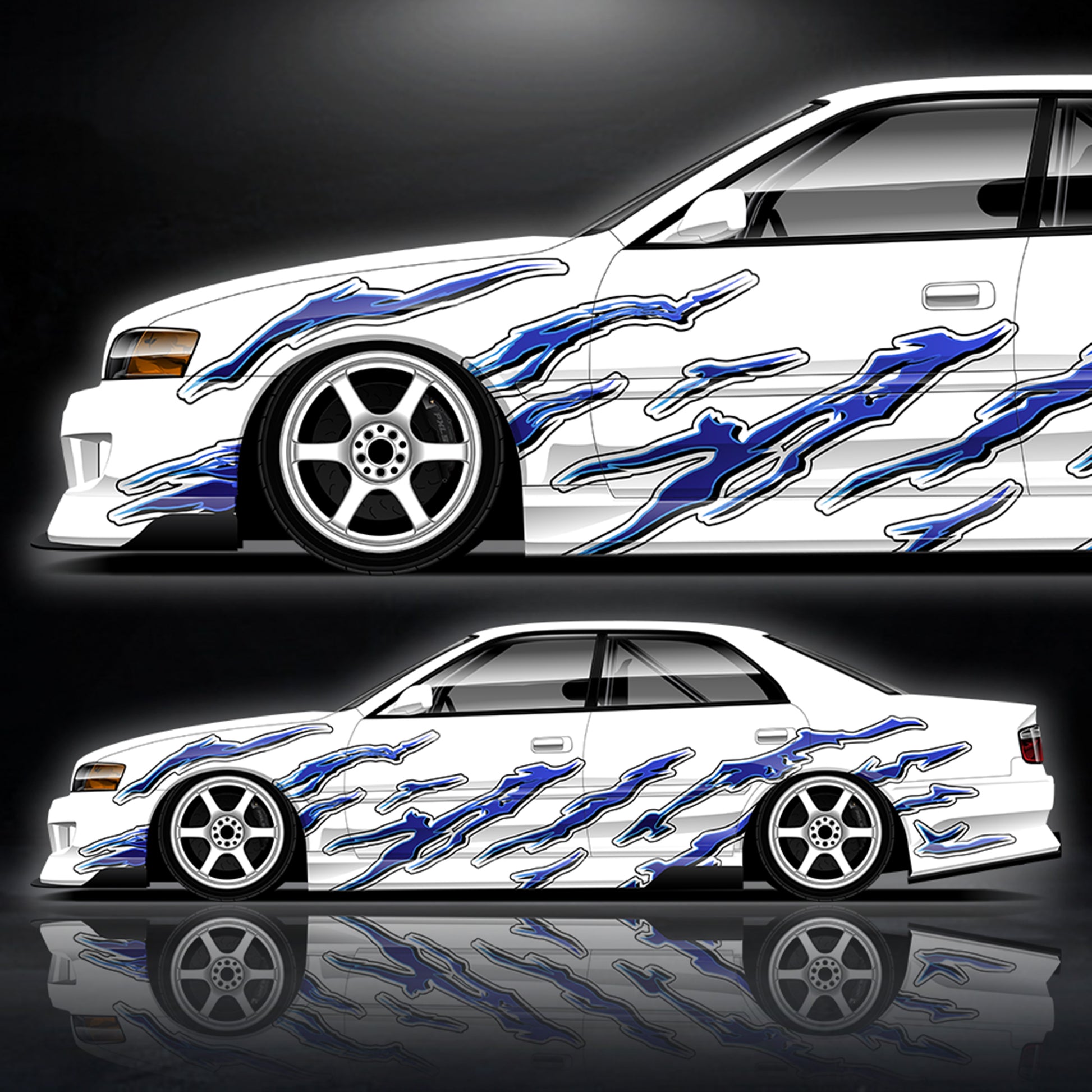 After purchase, we’ll scale the livery to your vehicle and adjust colors as requested. Expect an email or message to whichever contact information you provide within 7 business days with a mockup for your approval. Processing time is up to 4 weeks after mockup approval, as each order is custom printed.